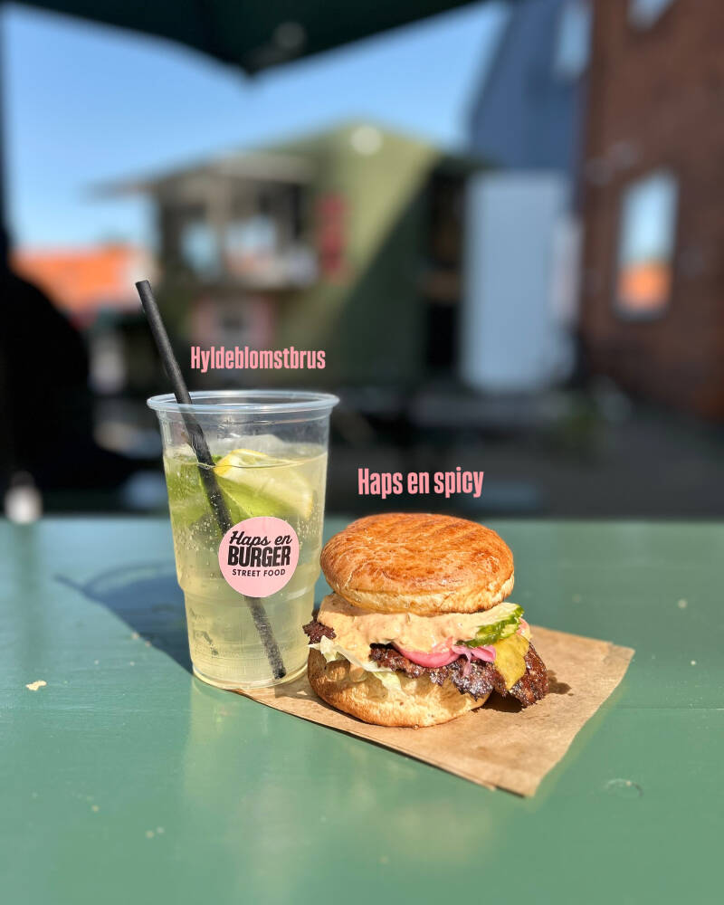 Kom og haps en burger i vores hyggelige ude område eller tag den med to go Vi glæder os til og se dig