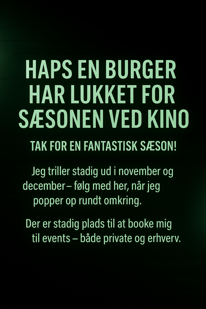 Haps en burger opstod ved ideen, om det mere frie og selvbestemmene arbejdsliv. Vi startede den 4 juni 2025. Vi har haft en skøn sæson ved kino . Nu er vi trillet hjem men vi tager gerne ud med den lille vogn kontakt os gerne